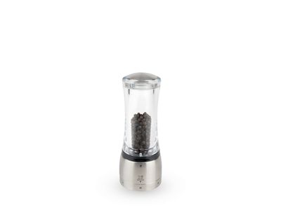 De Peugeot pepermolen uit de Daman-collectie is een voorbeeld voor schoonheid en moderniteit. Zijn ontwerp in strakke lijnen speelt in op de effecten van het materiaal door de transparantie van het acryl te combineren met de unieke schittering van inox. Deze pepermolen bevat een geniale innovatie: het weglaten van de verticale centrale as zorgt ervoor dat men makkelijk kan bijvullen via de magnetische dop bovenaan in de molen. Zijn U’Select-systeem voor een instelbare maalgraad op maat laat u toe om te variëren met smaken en het genot om de grootte van de gemalen peper te kunnen kiezen uit 6 mogelijke selecties. Zoals bij alle Peugeot molens, heeft zijn stalen maalwerk een onbeperkte garantie.