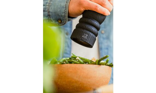 De Paris molen Nature Black 40 cm heeft een verrassende getextureerde afwerking dat een lichtspel teweegbrengt vol matte en glanzende reflecties. Het getextureerd silhouet is het resultaat van een proces waarbij het hout wordt gerecycled. Nadien krijgt het hout een beschermlaag met een ecologische vernis en is het klaar voor intensief gebruik. In het hart van deze iconische molen zit een stalen maalwerk voor peper met een levenslange garantie. Met zijn knop bovenaan kan je de maalgraad instellen. Om het plaatje compleet te maken, wordt deze molen geleverd met een biologische fairtrade peper, boordevol frisse en fruitige toetsen.