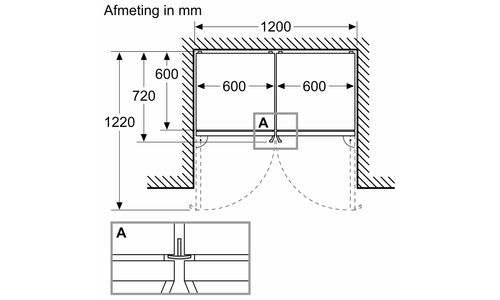 | Type koelkast | Tweedeurs koelkast (vriesvak onderaan) |