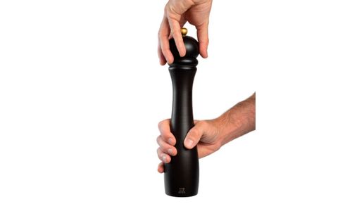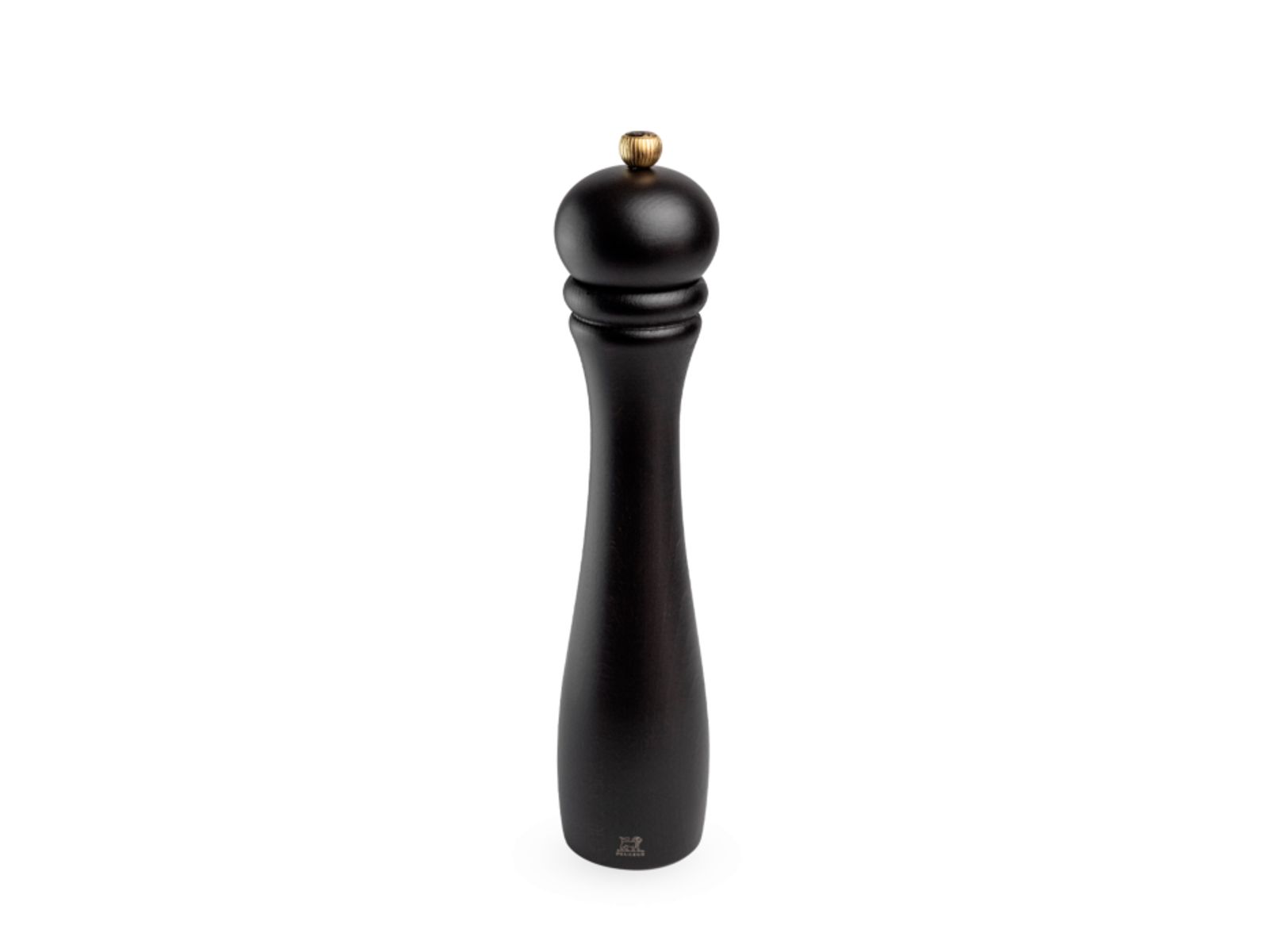 Met een slank een majestueus silhouet, een body van beukenhout gelakt in een elegante matzwarte kleur bekoort de zoutmolen Checkmate van 30 cm van Peugeot door zijn natuurlijke raffinement.