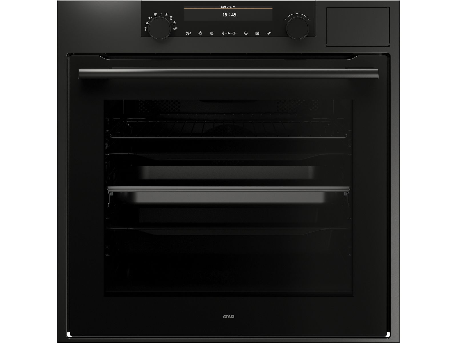 De intuïtieve bediening van de oven gaat via de massief metalen draaiknoppen links en rechts van het display en de oplichtende toetsen onder het kleuren TFT scherm. Met de linkerknop wordt eenvoudig de hoofdfunctie gekozen. Hierdoor is er altijd een overzicht over alle functies en heeft u directe toegang tot de belangrijkste functies. Na het selecteren van de hoofdfunctie wordt het exacte programma gekozen met de rechterknop en vervolgens temperatuur en indien gewenst tijd ingesteld. De rechterknop is een draai-/drukknop. Draaien om de juiste waarde te kiezen, drukken om door te gaan naar de volgende instelling.