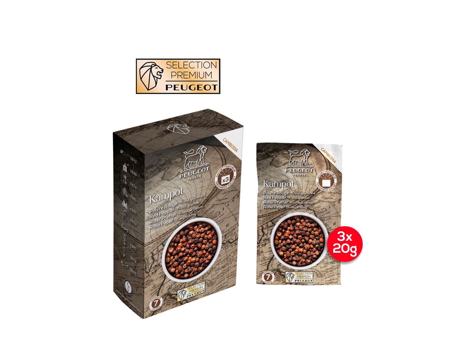 De rode peper is de trots van Kampot en wordt met de grootste zorg bes per bes geoogst, zodat enkel de volledig rijpe exemplaren geplukt worden. Het resultaat is een betoverende, fruitige rode peper met citrustoetsen die een uitzonderlijke en langdurige smaak heeft.