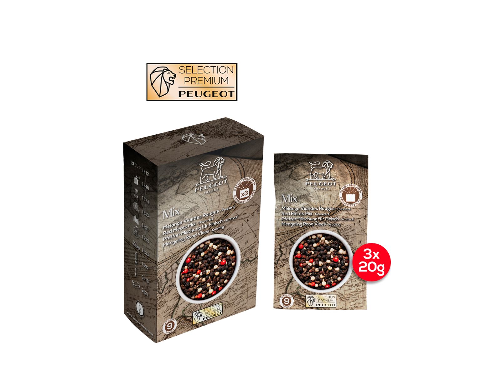 Een krachtige, subtiele pepermix voor rood vlees. Ook geschikt om bepaalde groenten of peulvruchten op smaak te brengen.