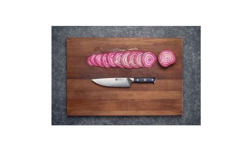 Een harmonie van uitzonderlijke prestaties en tijdloze elegantie. Precisiescherpte ontmoet professionele hantering. ZWILLING SPECTRUM levert een uitstekende balans bij elke snede. Met een uitgebalanceerd premium handvat gemaakt van Micarta en een gebogen bolster, zorgt het voor een veilige en ergonomische grip. Gemaakt van RCF speciaal geformuleerd staal, heeft het lemmet een 50% lagere CO? voetafdruk.* Met het vlijmscherpe SPECTRUM koksmes kun je moeiteloos fijne kruiden fijnhakken met een schommelende beweging en gemakkelijk door vlees of groenten snijden. Ervaar SPECTRUM en breng absolute balans in uw keuken.