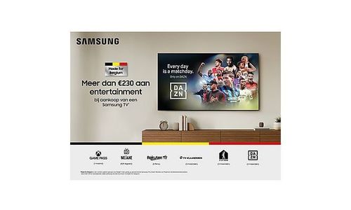 Met het Made for Belgium-pakket van Samsung krijg je een uitgebreide entertainment-ervaring ter waarde van € 230. Je kunt live sportwedstrijden volgen via DAZN, series kijken op TV Vlaanderen/Télésat, games spelen via Xbox Game Pass Ultimate of thuis fit blijven met de Fit At Home-app. Het pakket biedt een brede selectie aan apps en content die direct beschikbaar zijn, zodat iedereen in huis van optimaal entertainment kan genieten. Zo combineert The Frame hoogwaardige beeldkwaliteit met een complete en veelzijdige tv-ervaring.