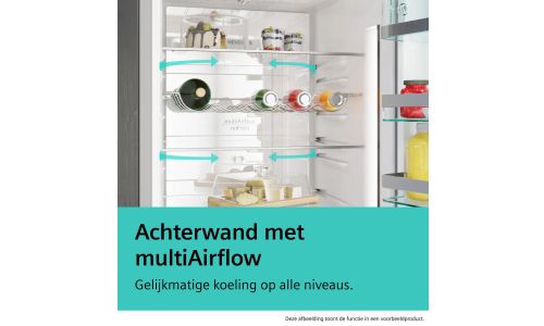 Als je koelkast niet gelijkmatig koelt, is al je producten vers houden een uitdaging. Dat is echter verleden tijd. De high-gloss achterwand met multiAirflow-technologie circuleert de lucht gelijkmatig voor een constante temperatuur op alle niveaus. Net aan de koelkast toegevoegde voedingswaren worden snel afgekoeld om de versheid optimaal te preserveren.
