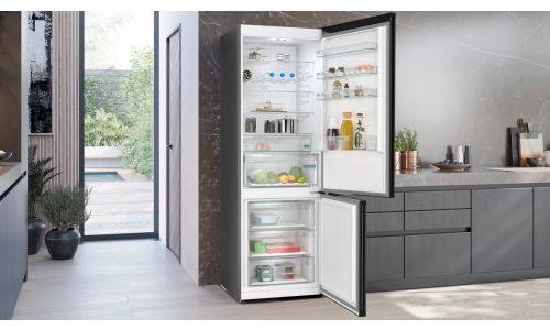 Dankzij de Total noFrost-technologie hoef je je geen zorgen meer te maken over het ontdooien van je vriezer. Total noFrost onttrekt vocht uit de lucht, waardoor er geen ijsvorming optreedt op de wanden en je etenswaren. Dit geldt ook voor de koelkast. Vocht en ijs zetten niet meer af op de achterwand, zodat je boodschappen goed bewaard blijven. Dit bespaart je niet alleen de moeite van het ontdooien, maar maakt je toestel ook energiezuiniger.