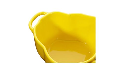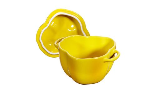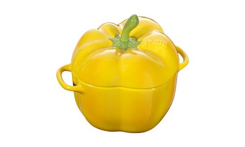 Met deze STAUB cocotte in de vorm van een gele paprika haalt u het hele jaar door de rijke kleuren van de natuur in huis. De natuurlijke vorm van de keramische schaal is betoverend – een ontwerp dat zo uit de tuin lijkt te komen! De schaal is geschikt voor zowel de magnetron als de oven. Na gebruik kan hij eenvoudig in de vaatwasser worden gereinigd. De schaal heeft een diameter van 12 cm en een inhoud van 0,5 liter. Dankzij het bescheiden formaat is dit kleine kunstwerkje perfect als serveerschaal, bijvoorbeeld voor een heerlijke soep of een gekookt of gestoomd bijgerecht bij vlees of vis. Heerlijke, goed geportioneerde groentegerechten bereidt u in een handomdraai in deze op de natuur geïnspireerde schaal uit de moestuinserie van STAUB.