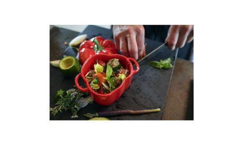 Haal een stukje tuin in huis met deze natuurlijk ogende STAUB braadpan in de vorm van een oranje-rode paprika. De natuurlijke vorm maakt koken en serveren nog aangenamer. Dit kleine kunstwerkje heeft een diameter van 12 cm en een inhoud van 0,5 liter, waardoor het ideaal is voor het bereiden van individuele porties. Serveer soepen, groente- en vleesgerechten en bijgerechten rechtstreeks vanuit de oven op tafel! De op de natuur geïnspireerde paprikabraadpan is gemaakt van keramiek en is daarom geschikt voor de oven, magnetron en vaatwasser. Dankzij de speciale eigenschappen van het materiaal houdt de pan de warmte goed vast en geeft deze gelijkmatig af aan het eten – ideale omstandigheden voor een heerlijke gratin. Ervaar authentiek koken zoals in Frankrijk met deze keramische schaal uit de moestuinserie van STAUB.
