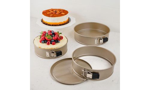 Bak met vertrouwen met de Cuisipro springvorm 26 cm. Deze stevige bakvorm is gemaakt van duurzaam carbon steel. De premium non-stick coating zorgt dat baksels eenvoudig loskomen. De siliconen tab maakt openen veilig en comfortabel. De wave base structuur bevordert een gelijkmatige garing. Ideaal voor cheesecakes, taarten en gelaagde desserts.