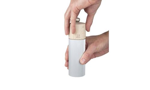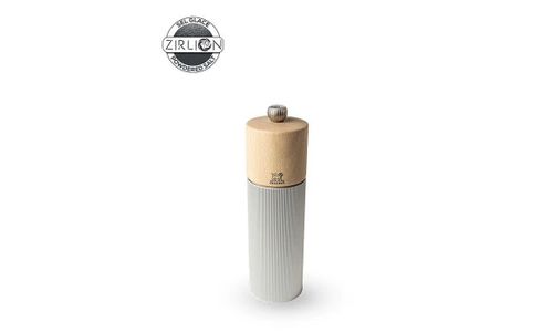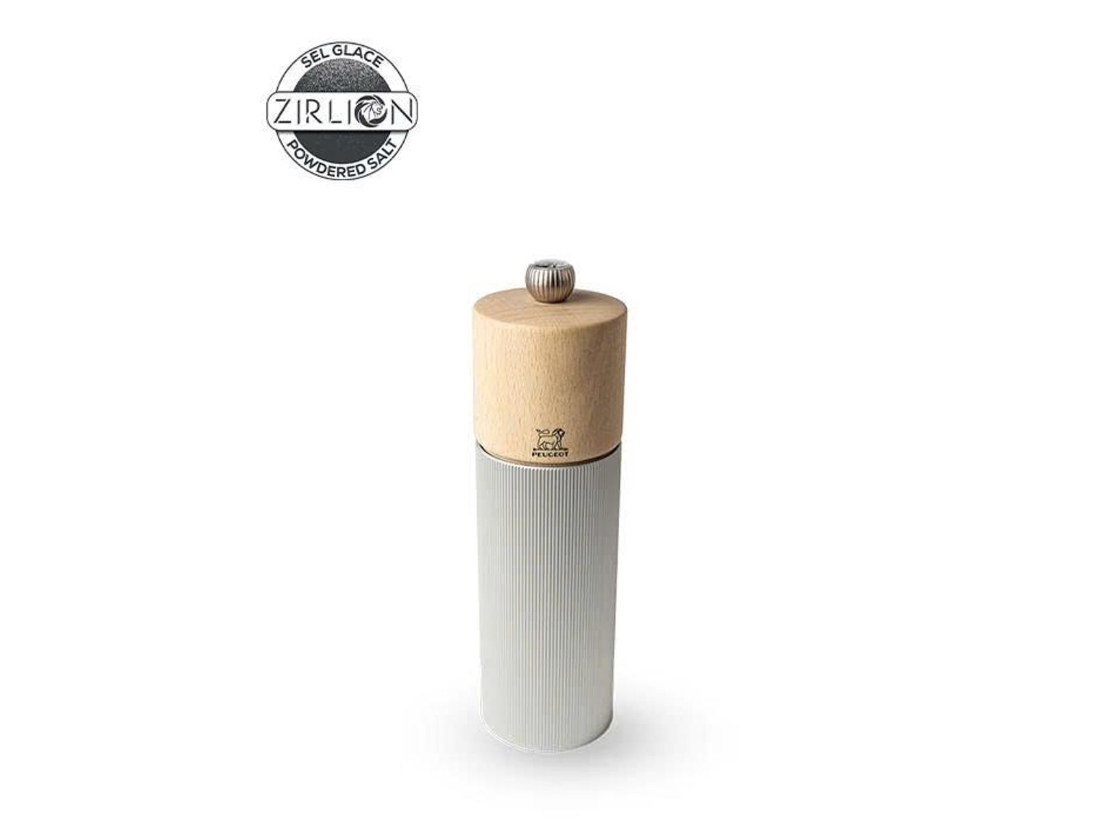 De geribbelde aluminium body en de kap van natuurlijk hout benadrukken de Scandinavische inspiratie van deze Line zoutmolen van 18 cm. Hij combineert chique materialen met een verfijnd grafisch effect. Perfect voor gebruik op tafel of in de keuken, voorzien van het Zirlion-zoutmechanisme met levenslange garantie en een knop voor het instellen van de maalgraad.