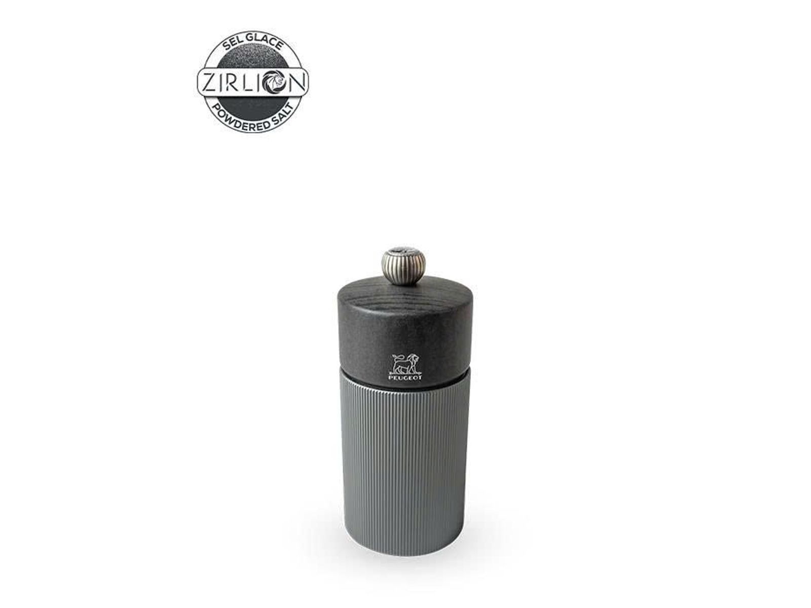 De Line Carbone zoutmolen heeft een nieuw, eigentijds design, versterkt door een gedurfde combinatie van materialen: een aluminium body waarvan de ribbels met het licht spelen en waarvan de tint perfect harmonieert met de subtiel gemetalliseerde grafietkleur van de houten kap. Gemaakt in Frankrijk weerspiegelt hij ook het vakmanschap van Peugeot: het Zirlion-zoutmechanisme heeft een levenslange garantie en de knop zorgt voor een eenvoudige en efficiënte instelling van de maalgraad (hoe strakker aangedraaid, hoe fijner het zout wordt gemalen).