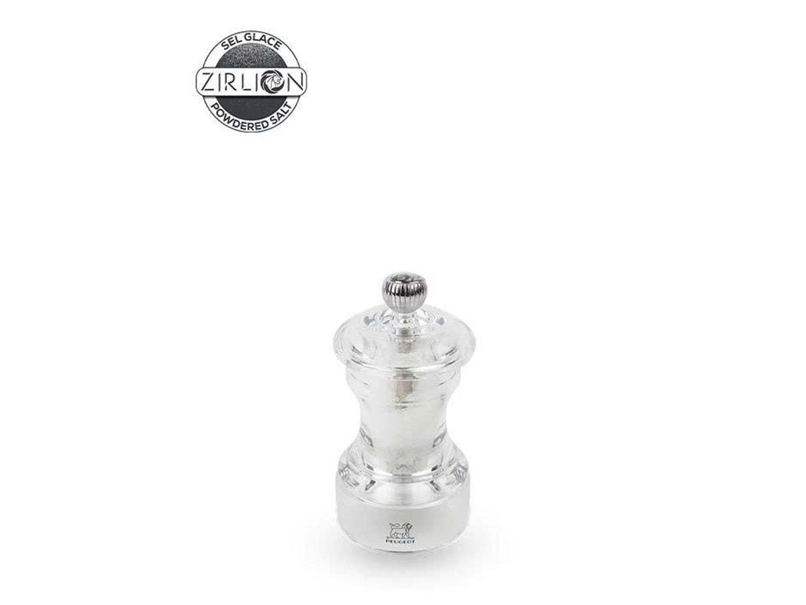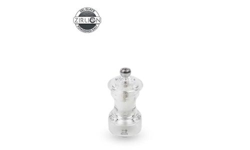 Deze molen in het historische Peugeot-design in transparante uitvoering is uitgerust met het Zirlion-mechanisme, een innovatie van Peugeot. De maalgraad wordt ingesteld met de elegante knop boven op de molen: hoe strakker aangedraaid, hoe fijner de maling, en omgekeerd. In combinatie met de Bistro Acryl pepermolen vormt hij een perfect duo voor op tafel.