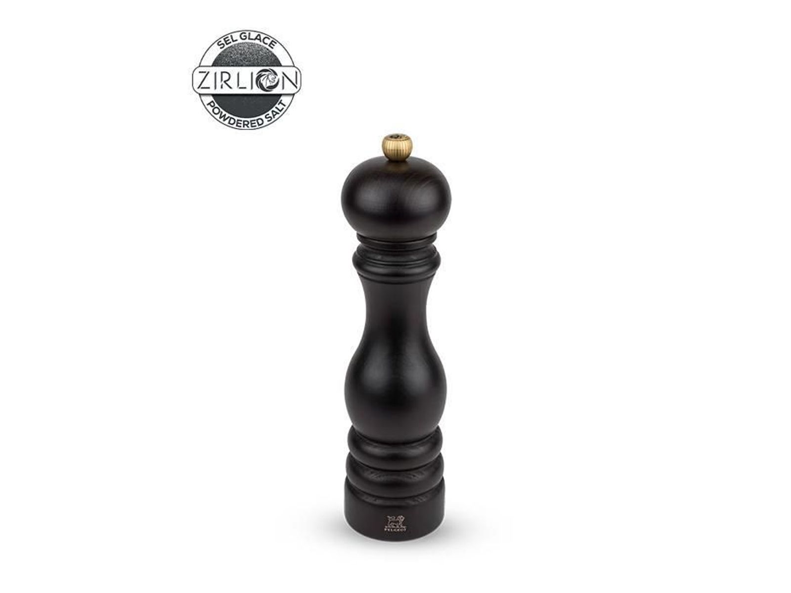 Het Paris model is de referentie onder de molens. Wereldwijd bekend om zijn prestaties en kracht. Deze molen symboliseert een eenvoudige en authentieke keuken. De Paris zoutmolen 22 cm, volledig uit hout, heeft een mooie smakelijke, warme chocoladekleur. Zijn ranke vorm zorgt voor een aangename grip. Deze manuele zoutmolen is uitgerust met een elegante goudkleurige sierknop, gegraveerd met de kop van de Peugeot leeuw, die je toelaat om de maalgraad van het zout in te stellen. Zoals bij alle Peugeot molens, heeft zijn stalen Peugeot-maalwerk dat is aangepast aan de consistentie van zout, een levenslange garantie.
