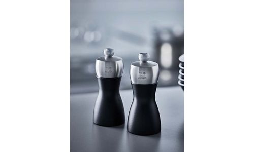 De manuele zoutmolen Fidji 15 cm is met zijn sierlijk silhouet een symbool voor elegantie. De combinatie van zwartgekleurd hout en inox creëert een echt evenwicht tussen deze contrasterende materialen.