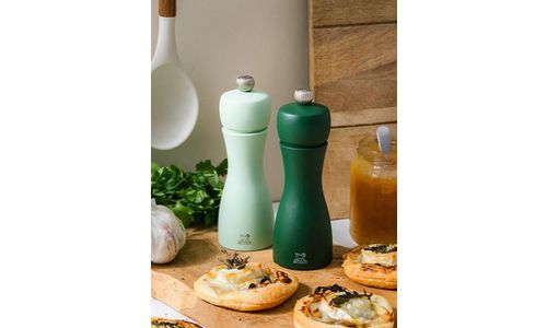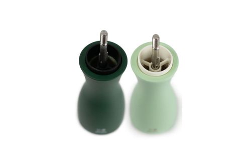 Dit manuele peper- en zoutstel in bij elkaar passende natuurlijke kleuren is geïnspireerd op de zachtheid van de natuur. De pepermolen is gehuld in donkergroen en de zoutmolen in lichtgroen, zodat je ze makkelijk kan onderscheiden