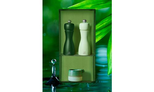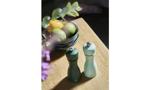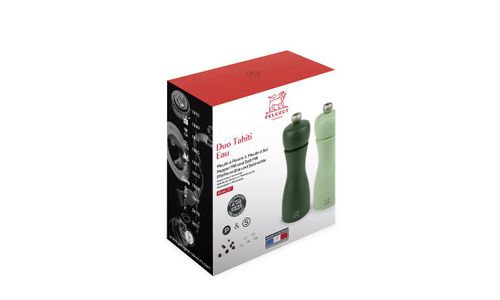 Het peper- en zoutduo Tahiti brengt een ode aan de natuur met een elegante uitvoering in natuurlijke trendkleuren. Mosgroen voor peper en muntgroen voor zout maken het makkelijk om de molens te onderscheiden. De peper- en zoutmolens Tahiti zijn gemaakt in Frankrijk en uitgerust met een maalwerk met levenslange garantie. Met de knop met P- of S-markering pas je moeiteloos de maalgraad aan.