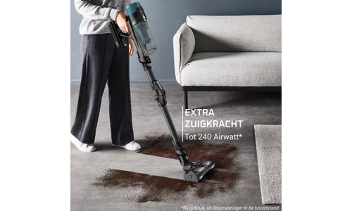 - Draadloze steelstofzuiger met een zuigkracht van tot wel 240 Airwatt* en een nieuwe generatie borstel om overal grondig te reinigen, zelfs op tapijten