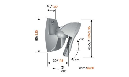Deze universele speaker beugel beschikt over een draai- en kantelfunctie voor een optimale luisterpositie. Installatie is eenvoudig, en alle benodigde materialen zijn bijgesloten. De VLB 500 is er in het zwart en zilver.