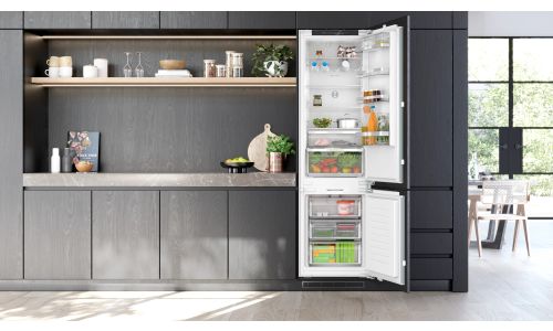 De Intelligent Inverter Technology bestaat uit de intelligente interactie van de temperatuursensoren, het elektronisch systeem en de compressor. De sensoren controleren continu de temperatuur zowel binnenin de inbouwbare koelkast als erbuiten. De veranderingen in temperatuur worden vervolgens onmiddellijk doorgegeven aan het elektronisch systeem zodat de compressor zijn kracht kan aanpassen aan de situatie.
