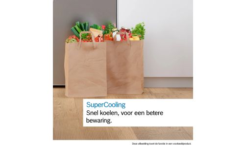 Inkopen gedaan? De eerste, cruciale stap om langer te bewaren: de ingrediënten snel en effectief afkoelen bij thuiskomst! Met één druk op de knop verlaag je tijdelijk de temperatuur in de koelkast, met minstens 2°C. Na een tijdje schakelt SuperCooling zichzelf automatisch weer uit.