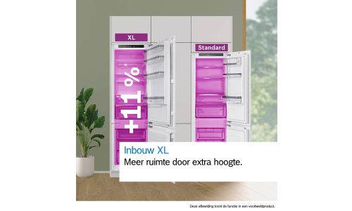 extra volume vergeleken met standaard inbouw koel-vriescombinaties hoef je je geen zorgen meer te maken over gebrek aan ruimte. Door de extra hoogte kun je meer opbergen zonder dat je extra vloeroppervlak nodig hebt. Geen volle en rommelige koelkastplateaus meer dankzij de extra ruimte voor je favoriete eten en drinken.