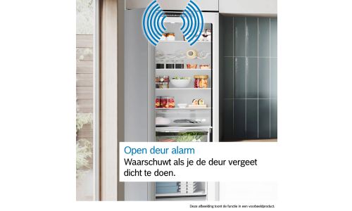De koelkast of diepvriezer geeft een signaal met licht en geluid wanneer de deur niet goed is gesloten - of in het geval van een storing of stroomonderbreking. Zo vermijd je voedselbederf en energieverspilling.