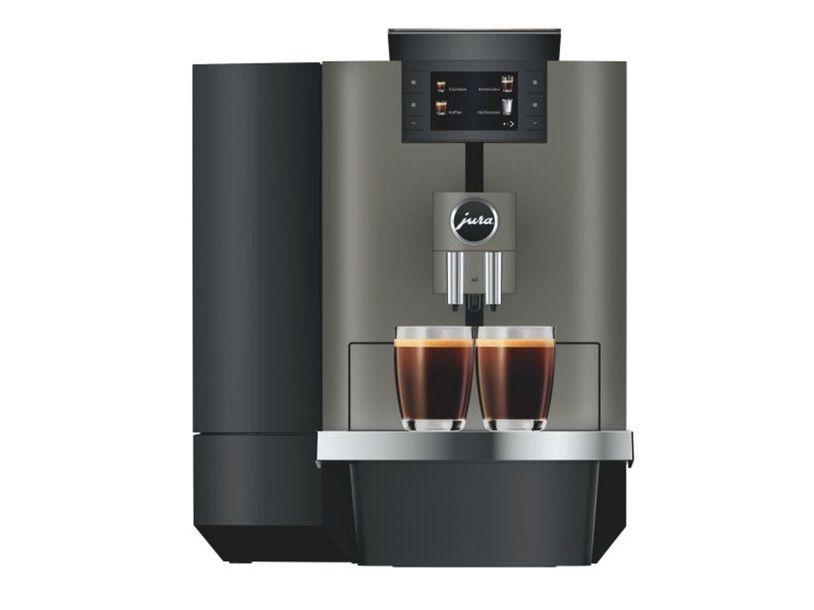 Met de kleur Dark Inox en rechtlijnige vormentaal presenteert de X4 zich in het klassieke JURA-design. Hij is een blikvanger en in een designgerichte omgeving komt hij even stijlvol over als op het buffet van een cateraar. Het design van de X4 brengt de esthetiek en functionaliteit in een harmonisch evenwicht.